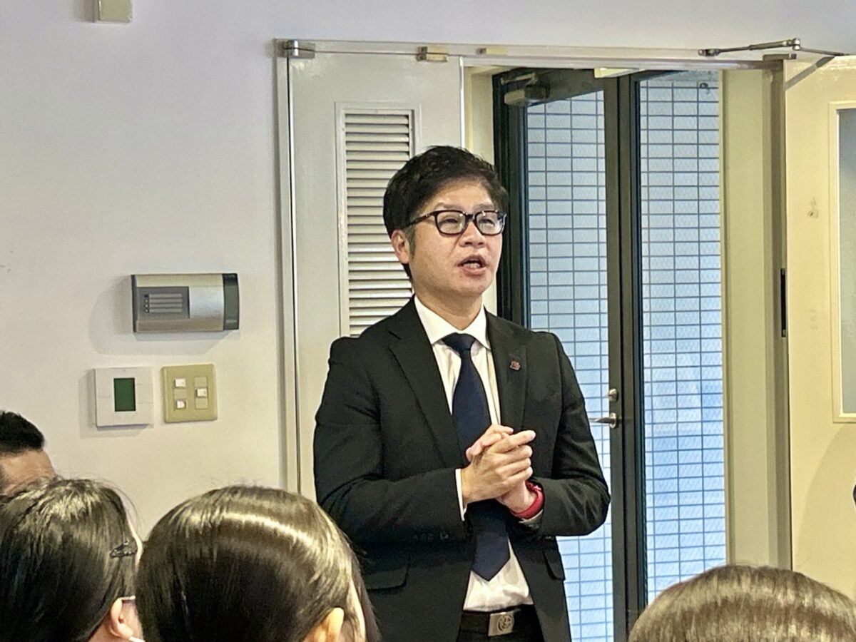 お話の中では、これから社会人生活をスタートするうえでの同期の存在の大切さ、そしてここまで支えてくださったご家族や親御さんへの感謝の気持ちを忘れないことについてお話がありました。