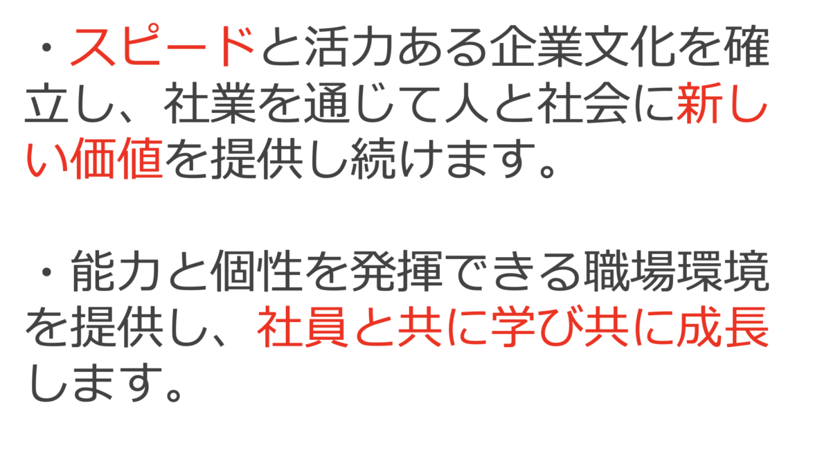 世の中の経営理念を数多く調べてつなぎ合わせた感は否めませんが、初めて作ったものとしては、今振り返ってもそれなりに良いものだったと思います。